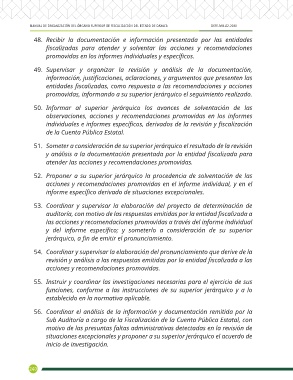 50. Informar al superior jerárquico los avances de solventación de las
