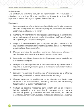 Las atribuciones generales del Jefe de Departamento de Seguimiento se