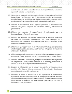 27. Vigilar que el personal comisionado que hubiera intervenido en las visitas,