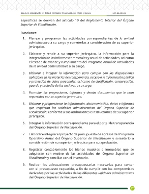 específicas se derivan del artículo 19 del Reglamento Interior del Órgano