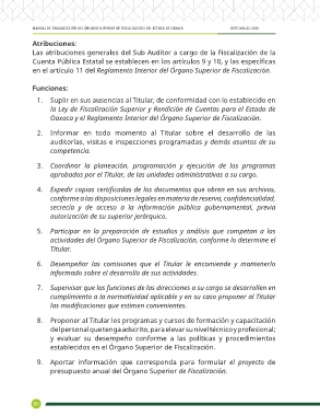 Las atribuciones generales del Sub Auditor a cargo de la Fiscalización de la
