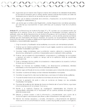 Artículo 17. Las Direcciones de Auditoría Municipal “A” y “B”, contarán con una persona titular, que