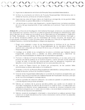 Artículo 21. La Dirección de Investigación Administrativa Municipal, contará con una persona titular,